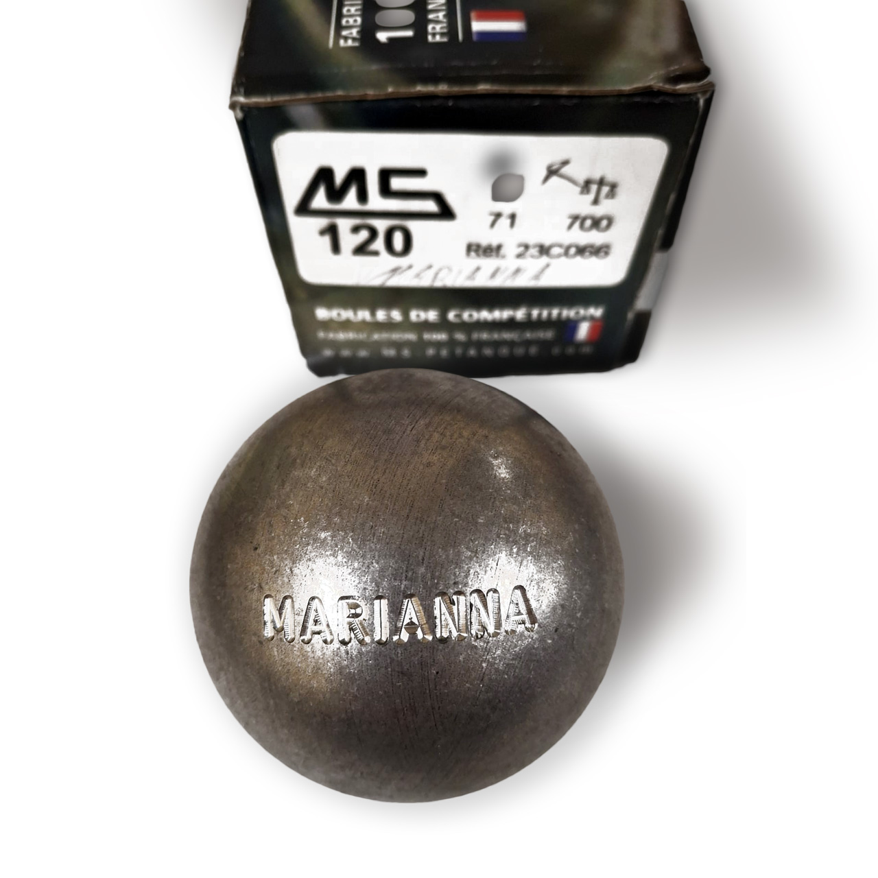 "120" Boule Kugel - MS Petanque 700 Gramm, 71 mm gravur MARIANNA