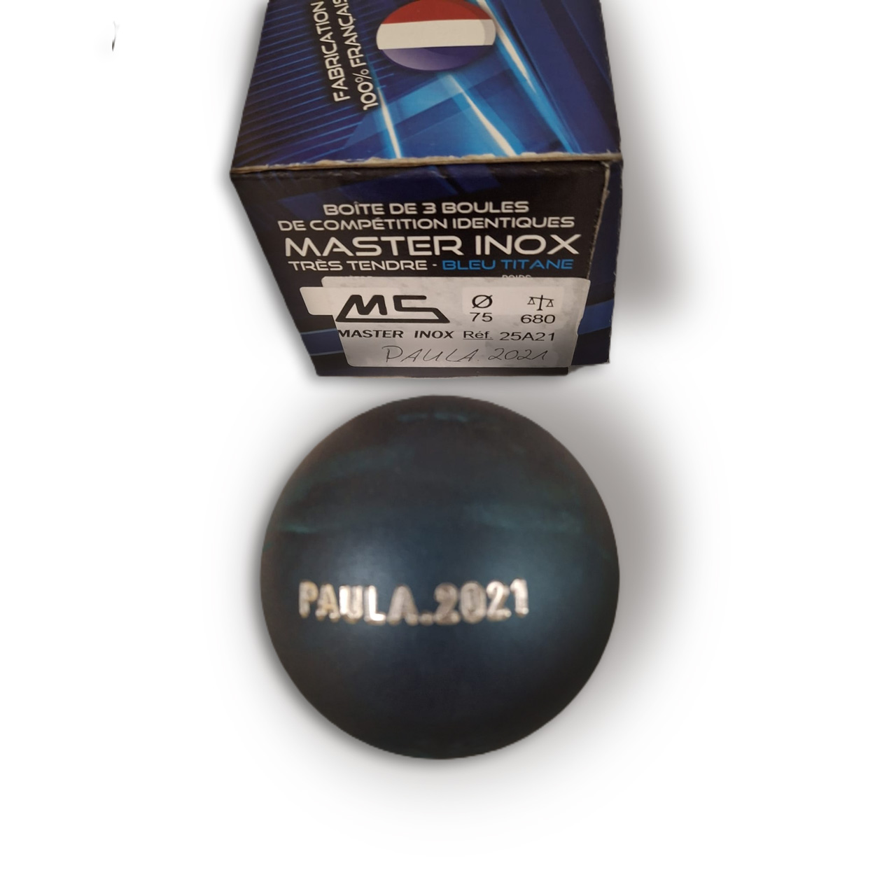 "Master" INOX Boule Kugel - MS Petanque 680 Gramm, 75 mm gravur PAULA.2021